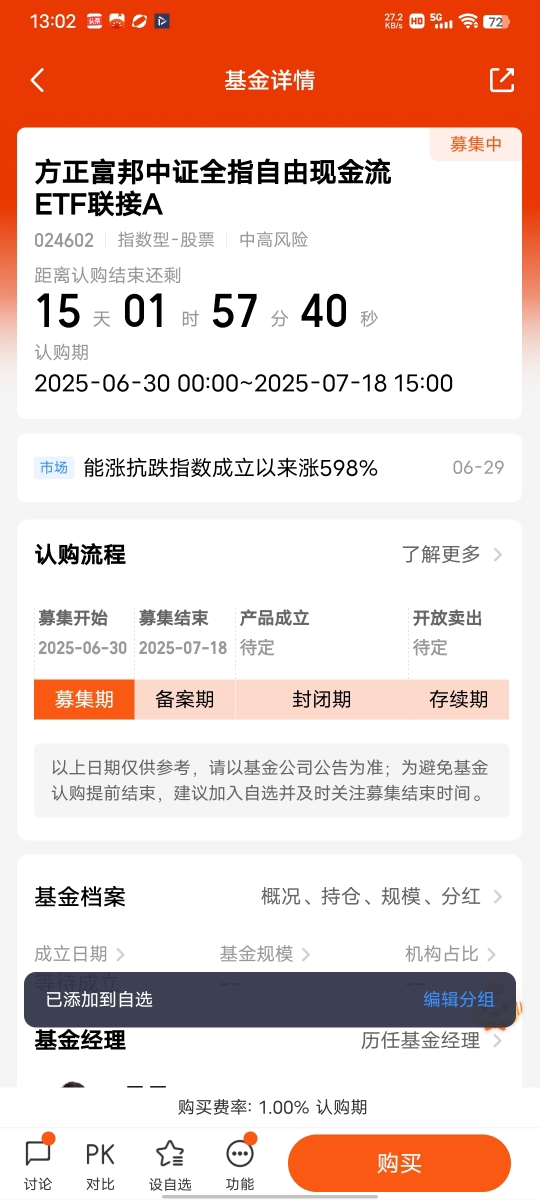 方正富邦中证全指自由现金流ETF联接基金采用双基金经理制,拟任基金经理吴昊拥有10年证券从业经验,6年投资经验,具备完善的量化投资策略体系;基金经理于润泽具有大量深入的量化投资研究经验,包括量化多因子策略、量化择时策略、大类资产配置,量化风险管理等 。两位经验丰富的基金经理携手,有望为投资者更好地把握投资机会,实现资产的稳
