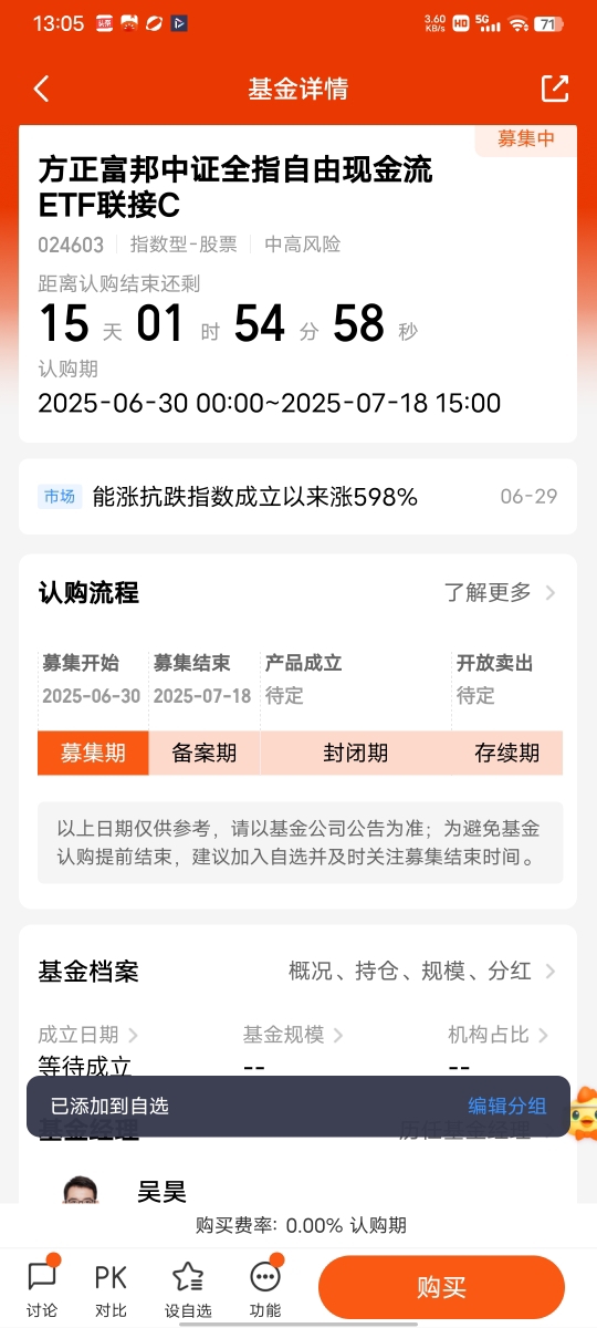 方正富邦中证全指自由现金流ETF联接基金,正是基于对自由现金流概念的深刻理解和对优质企业的精准筛选,为投资者提供了一种高效的投资工具。该基金紧密跟踪中证全指自由现金流指数,该指数在编制时充分考虑了自由现金流的重要性,通过一系列严格的筛选条件,如要求自由现金流和企业价值均为正、连续5年经营活动产生的现金流量净额为正、盈利质量由高到低排名位于样本空间80%等 ,确保选取的样本企业具有较强的现金流创造能力和稳定的经营状况。