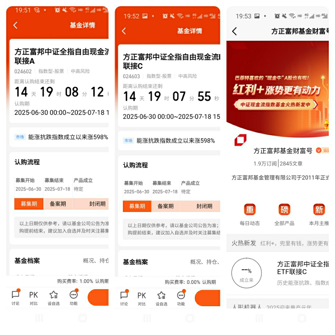继首批自由现金流ETF成立后,方正富邦中证全指自由现金流ETF联接也趁热打铁,于6月30日至7月18日火热发行中。