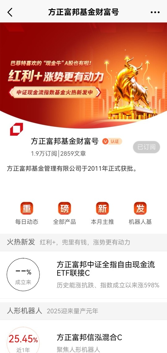 不过投资还是要讲究方式方法,尽量不追高,搭配定投,适时止盈,自由现金流所包含的企业经过了时代的考验,其创富能力还是非常不错的,而且有不错的持续性,在当下的投资环境里,也会是不错的选择,可以与红利资产一起搭配,共享现金流“稳稳地幸福”~@方正富邦基金