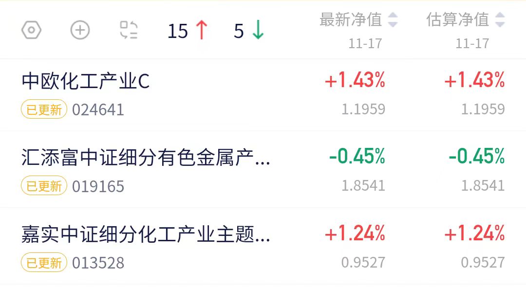 $中欧化工产业混合发起C(OTCFUND|024641)$今天上涨1.43%$汇添富中证细分有色金属产业主题ETF发起式联接C(OTCFUND|019165)$今天调整0.45%