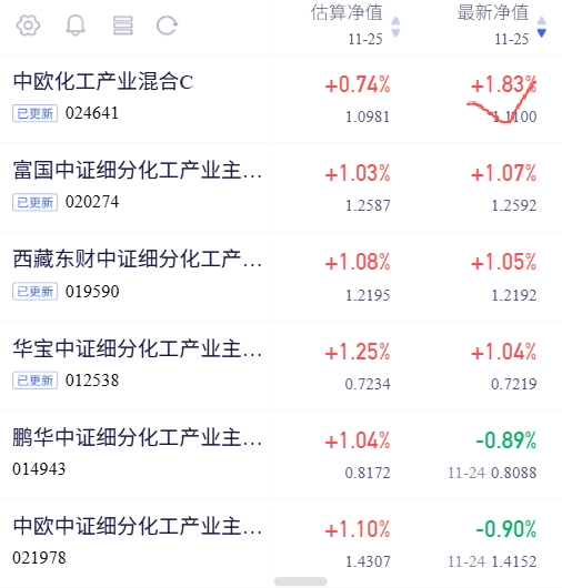 $中欧化工产业混合发起C$ 涨幅1.83%,再次超出了估值的预期,是全市场唯一的化工主动混合基金,覆盖整体也是更全面。