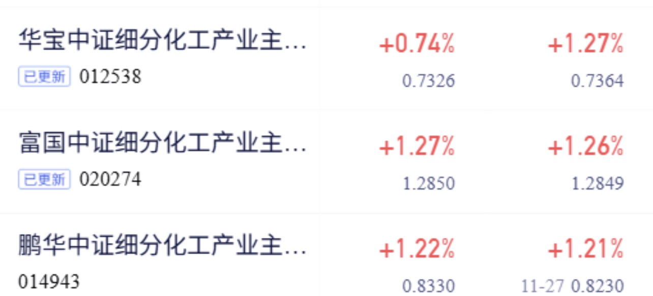 这只基金的配置更偏向上游资源与高景气化工材料,在涨价逻辑和需求回暖的双驱动下,净值弹性相对更高。当前化工板块仍处在修复阶段,短期可能跟随大盘震荡,但中期估值处于相对低位,基本面改善带来的业绩支撑正在逐步显现。今日的 2.50% 涨幅,也体现了行业回暖下的集中度提升与资金回流。