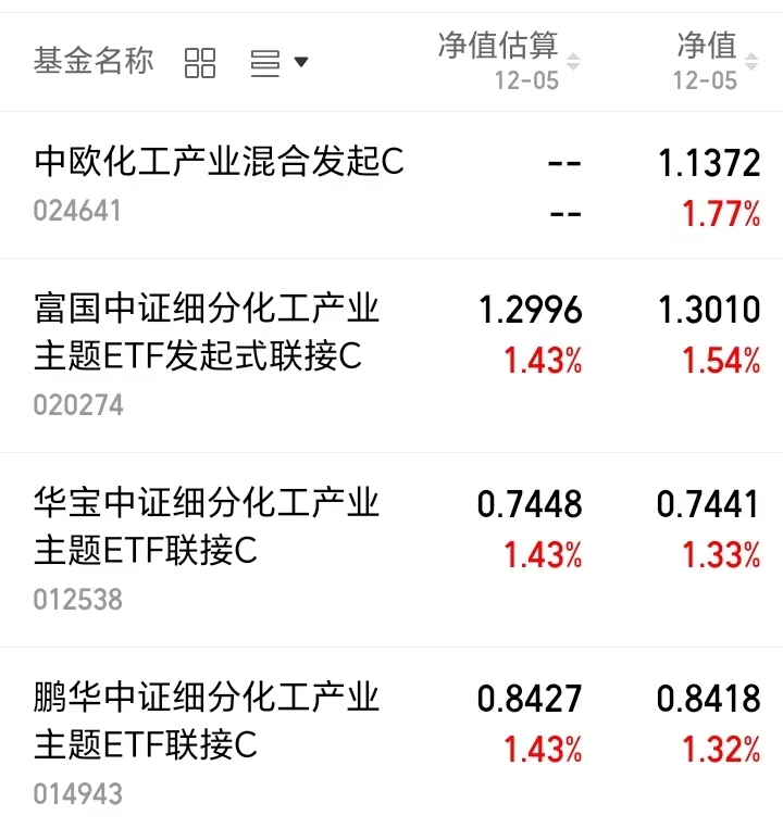 $中欧化工产业混合发起C(OTCFUND|024641)$今天上涨1.77%;