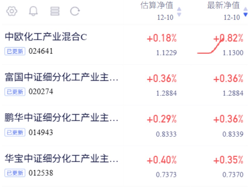 中欧化工产业混合C今日净值上涨 0.82%,化工板块延续偏强走势,周期情绪稳步修复。这段时间化工产业链景气度回升迹象逐渐增强,资金也在持续小幅回流。组合今日稳稳跟涨,表现算是中规中矩但挺扎实的,继续保持关注行情节奏。
