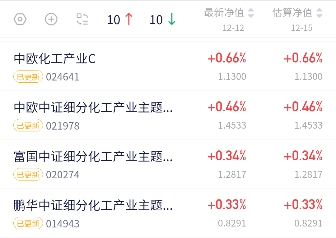 $中欧中证细分化工产业主题指数发起C(OTCFUND|021978)$上涨0.46%