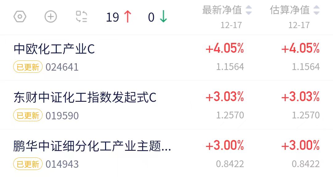 化工板块净值播报