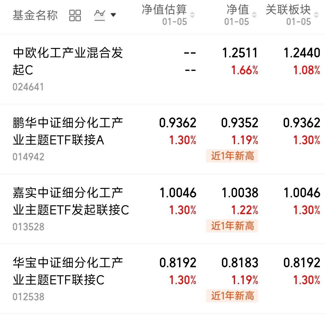从今天的情绪面来看,短线市场的做多情绪比较高涨,大家的热情明显高于机构,毕竟全面开花的市场。化工类也有所表现,中欧化工产业今天上涨1.66%。$鹏华中证细分化工产业主题ETF联接A(OTCFUND|014942)$上涨1.19%,$嘉实中证细分化工产业主题ETF发起联接C(OTCFUND|013528)$上涨1.22%,$华宝中证细分化工产业主题ETF联接C(OTCFUND|012538)$上涨1.19%。