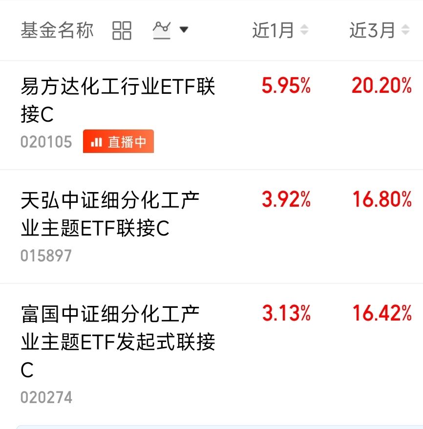 权重稳住后题材跟上,热点有序轮动,行情才能走得久。化工板块有望接棒有色,成为最强的周期赛道,政策优化了行业供给,2026 年行业将迎来周期拐点。我看好易方达化工行业 C,这只基金费率低,布局三桶油还覆盖细分化工领域,能更全面捕捉化工板块机会,近一年业绩在同类里排第一,接下来打算择机加仓这只基金。