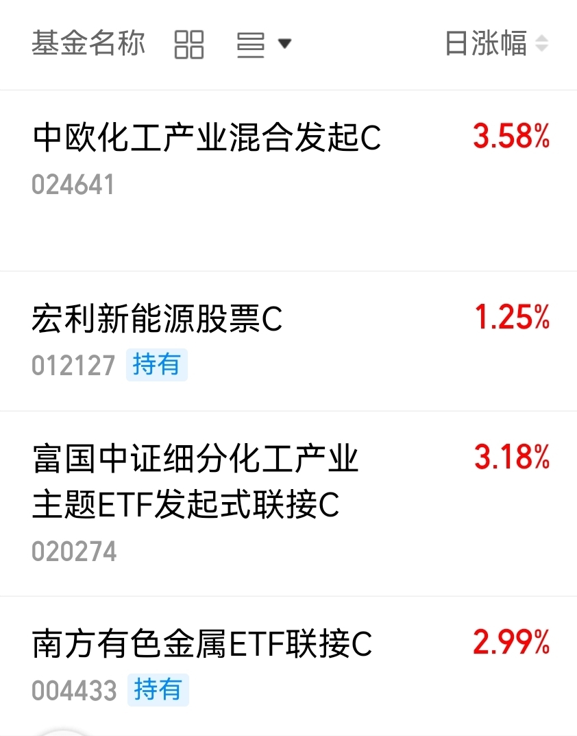 今天大A普涨,特别是资源类的,有色金属反弹,化工持续强势,关注和持有的几只这类基金今天收益都不错。