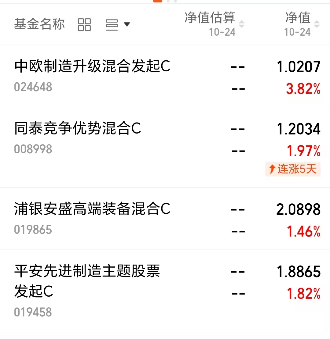 $中欧制造升级混合发起C(OTCFUND|024648)$聚焦制造升级主线,今天上涨3.82%,大幅领先同类。