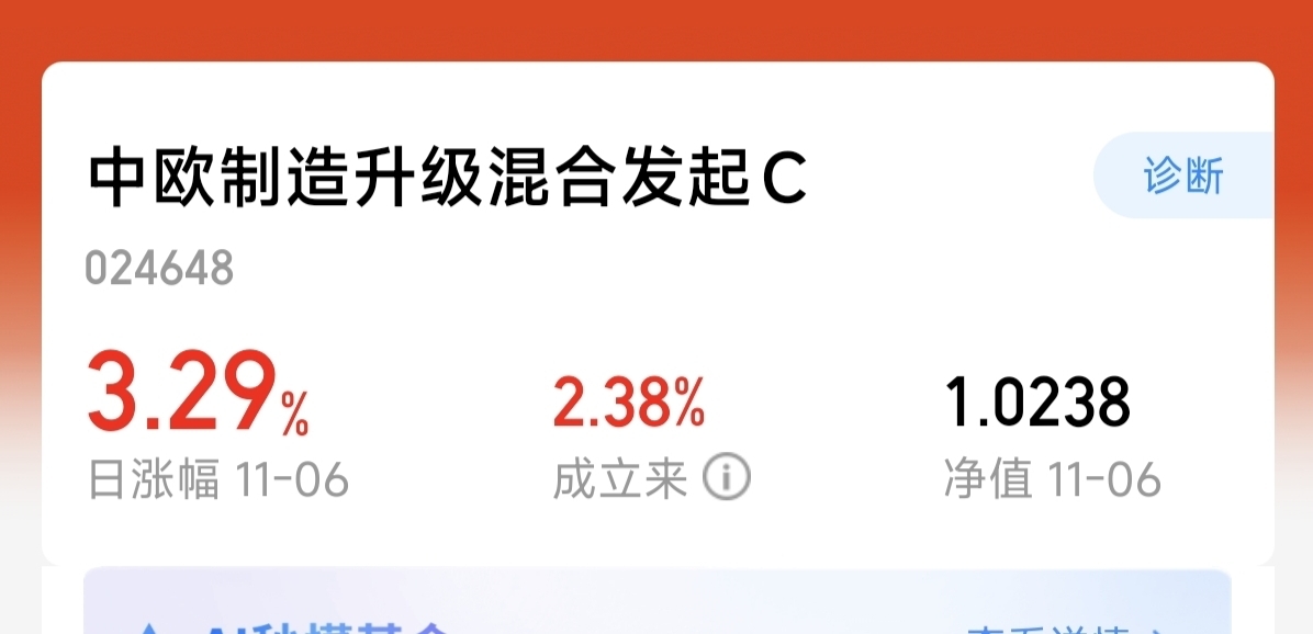 机器人果然还是牛,今年来一直走的是主线行业。短暂调整之后,今天又是再次突破收复失地,$中欧制造升级混合发起C$ 这只主动的机器人。今天涨了3.29%。,爆发力的表现还是强啊。在本轮的行情中,长期做到了涨多跌少。不得不说,还是主动的机器人表现更强。