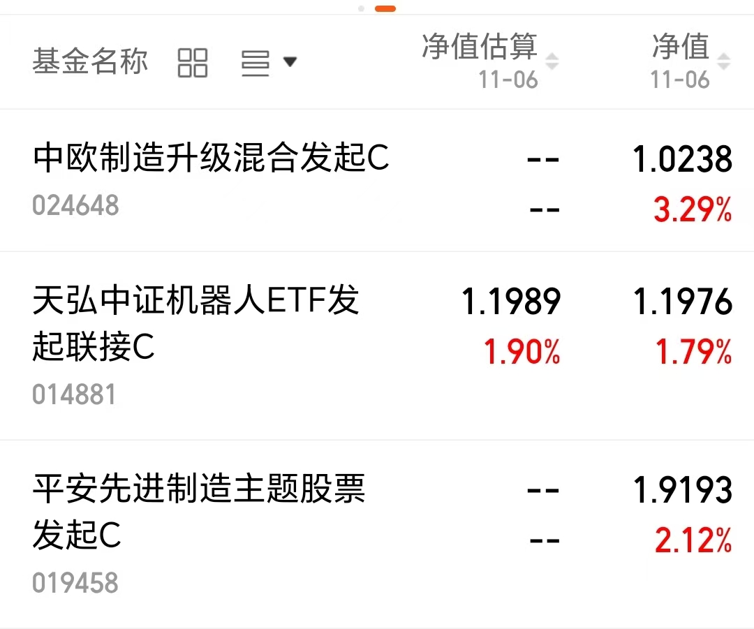 $中欧制造升级混合发起C(OTCFUND|024648)$聚焦人形机器人板块,今天上涨3.29%;