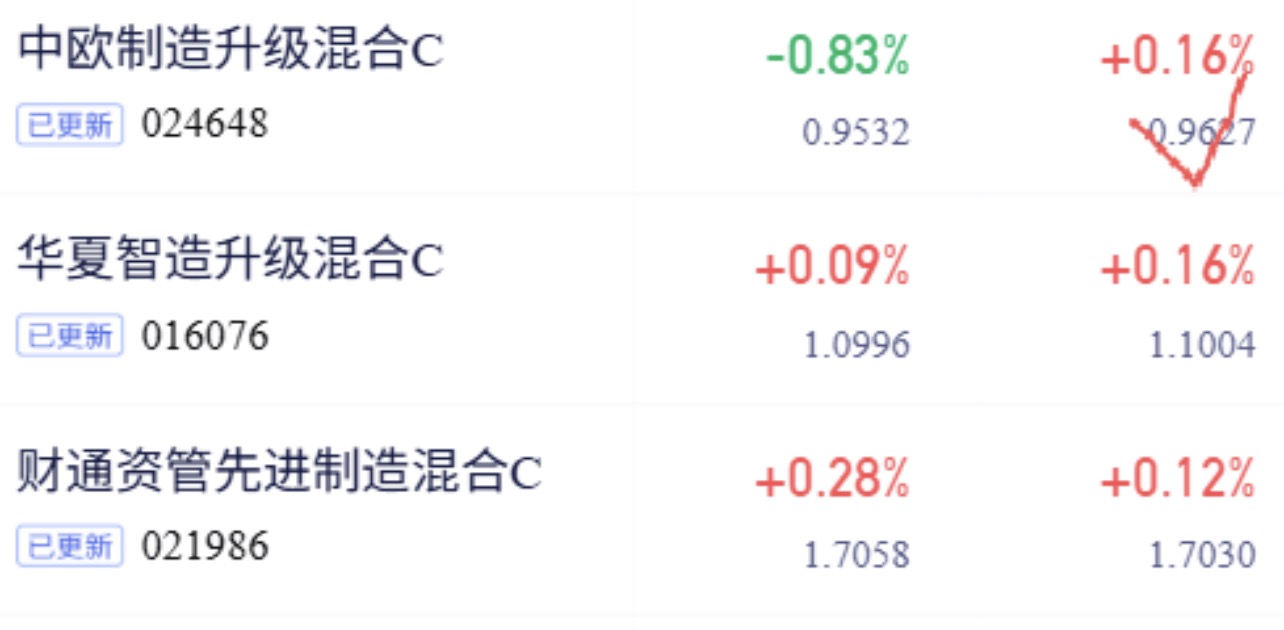 中欧制造升级C 涨0.16%,制造赛道今日整体偏强,装备制造、工业自动化方向小幅走高,资金对高端制造板块的关注度持续升温。中欧制造升级C也顺势微涨0.16%,稳步向上。