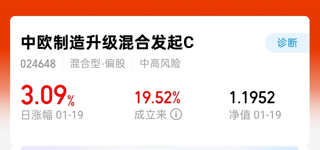 混合基金持仓丰富,长期看涨!中欧制造升级混合C大涨3.09%,近一年涨近20%,