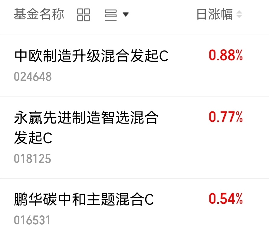$鹏华碳中和主题混合C$ 涨幅0.54%