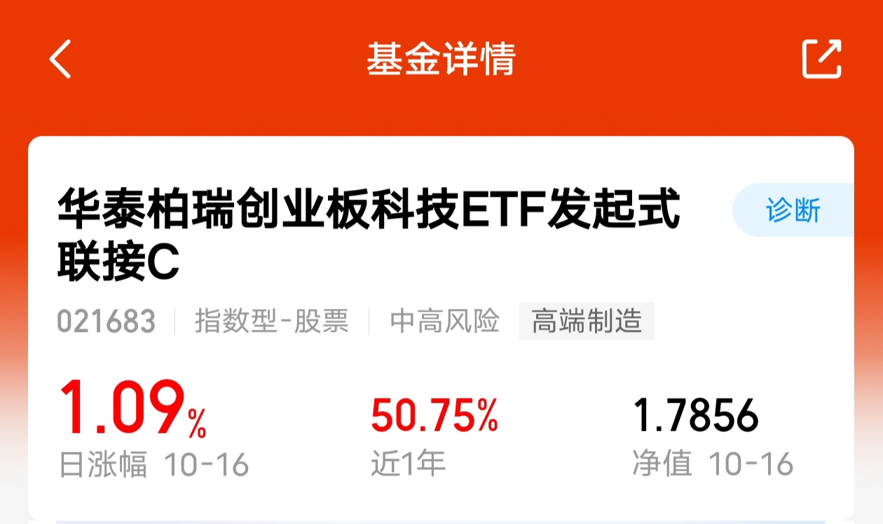 $华泰柏瑞创业板科技ETF发起式联接C$ 今天表现不错哟,涨了1.09%。近三个月41%的涨幅真给力,感觉科技赛道的潜力还在释放。