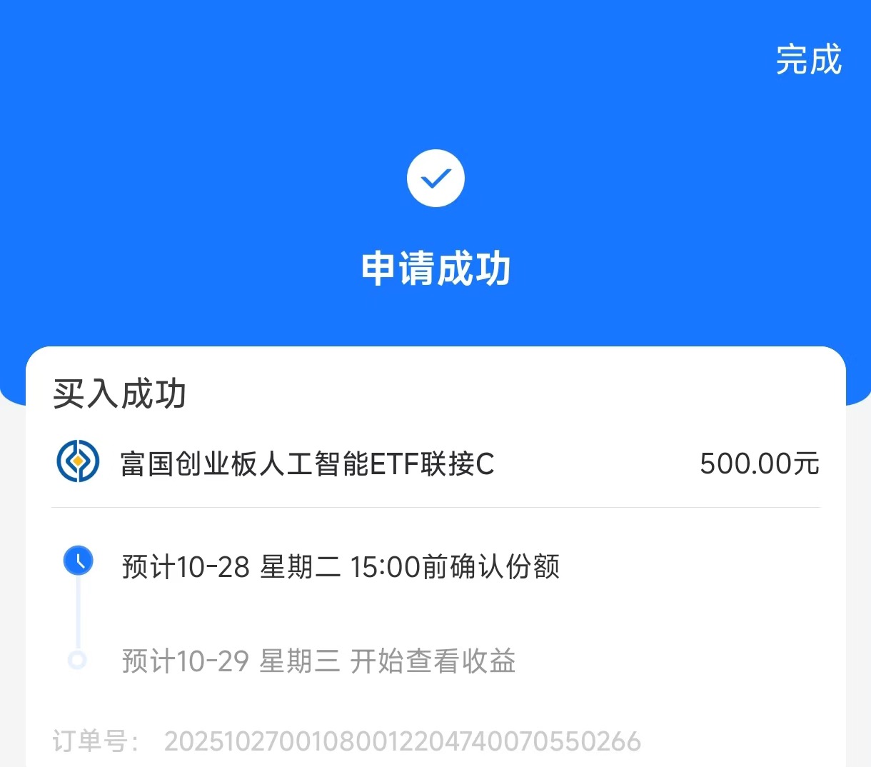 我今天打算追一笔——$富国创业板人工智能ETF发起式联接C$ 它紧盯创业板AI指数,一半权重都在光模块、算力芯片这些AI底层硬货上,中际旭创、新易盛这些龙头全在里面!成立至今涨了40.44%,现在AI有政策、有技术突破,光模块还缺货到不行,并且很明显未来的发展途径还得是看大科技这边,所以说今天我准备再追涨一笔