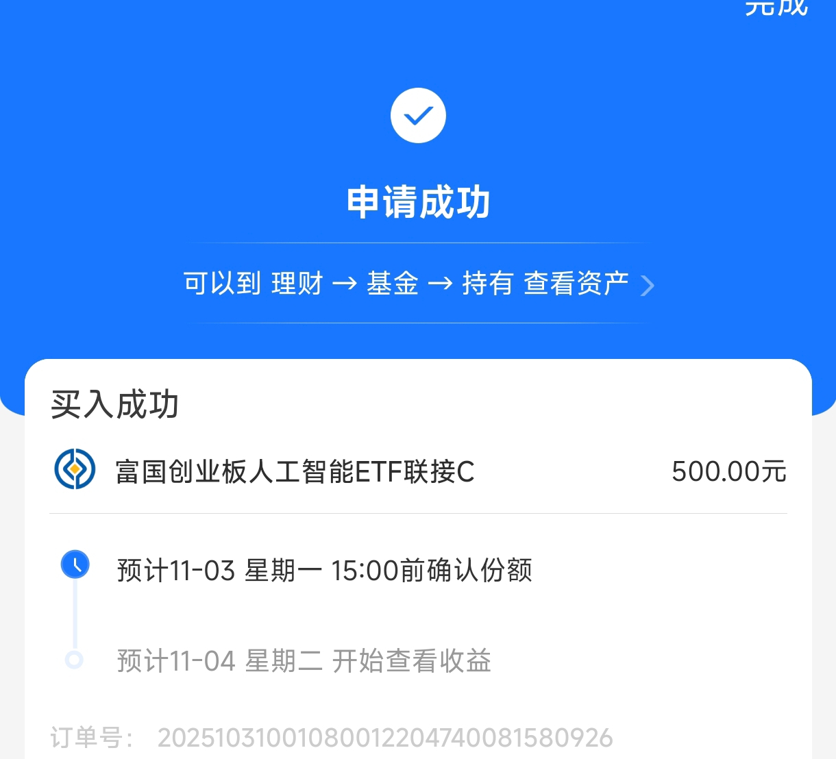 今天A股三大指数集体震荡,创业板指迎来小幅度的调整,但是科技成长赛道依旧火热,我准备布局$富国创业板人工智能ETF发起式联接C$ ,这支基金精准把握这一趋势的优质标的,与覆盖全创业板的产品不同,这支基金聚焦于人工智能与深度绑定的核心企业,能够精准捕捉赛道成长的红利,而且我看这只基金还是7免,这个优势就比较大了,交易也是比较灵活的,今天趁着行情还在调整,先上车布局