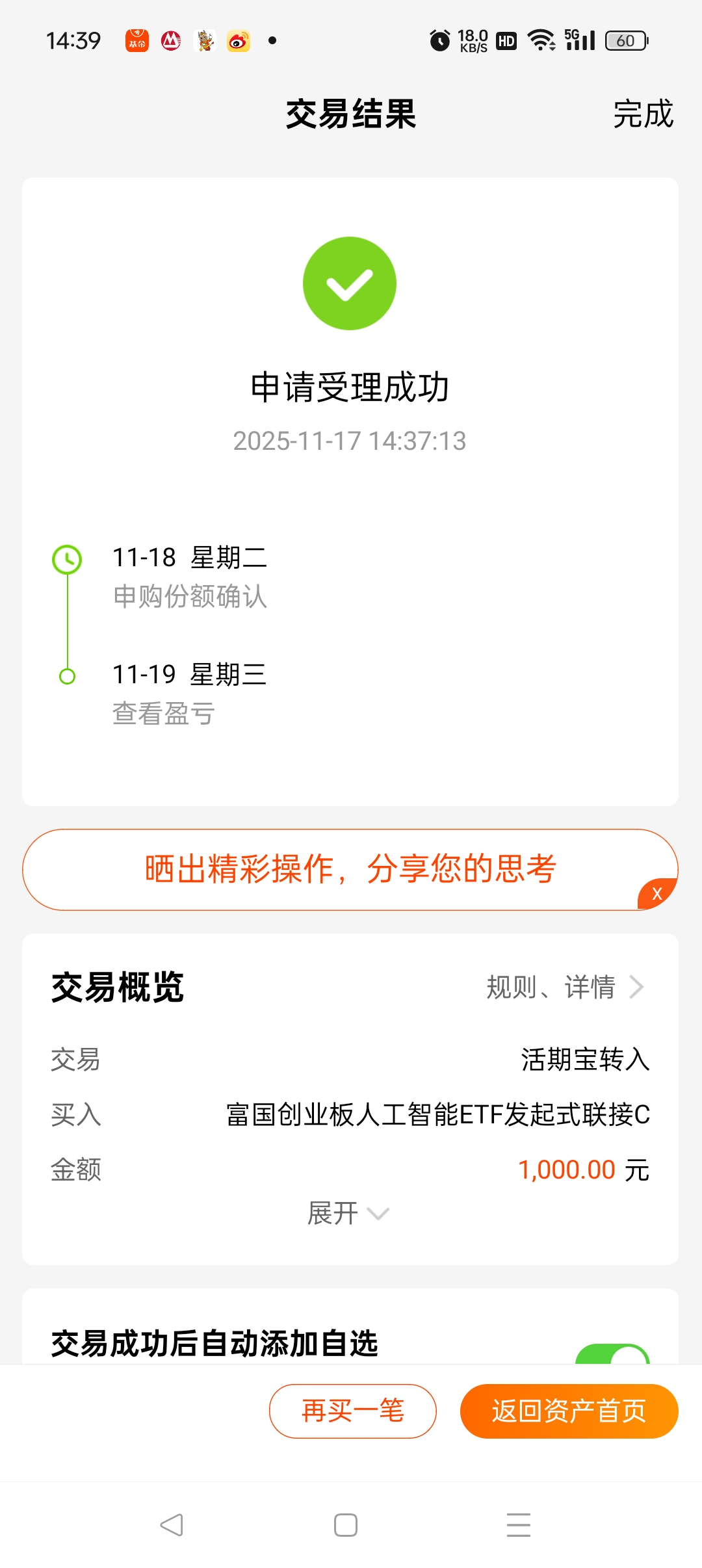人工智能:巴菲特认为苹果在AI领域落后于硅谷其他巨头。过去两个季度,老爷子已经累积减持其曾持有苹果的3/4,开始增持谷歌40多亿美金,并成为前十大持仓。有个观点,所有上涨的主线都是在补涨AI,从光模块到液冷,从铜到铝,从煤炭到核电,都轮过。作为对后续几十年甚至百年都会产生大影响的人工智能来说,这种“躁动”是正向的。投资本就是要对未来有信心、给估值,如果AI这么大的变化都没信心,那就不用炒,人工智能etf今年会是涨幅最大的指数,还是看好Ai方向,一切都是Ai引发的,无论储能、资源、电力、互联网都是这个大逻辑上的品种都轮动过,暂时调整不可惧怕,何况硬件,准备分批建仓人工智能。猴哥先行加仓1000块,后续有机会再另行加仓。相关基金:$富国创业板人工智能ETF发起式联接C(OTCFUND|024663)$