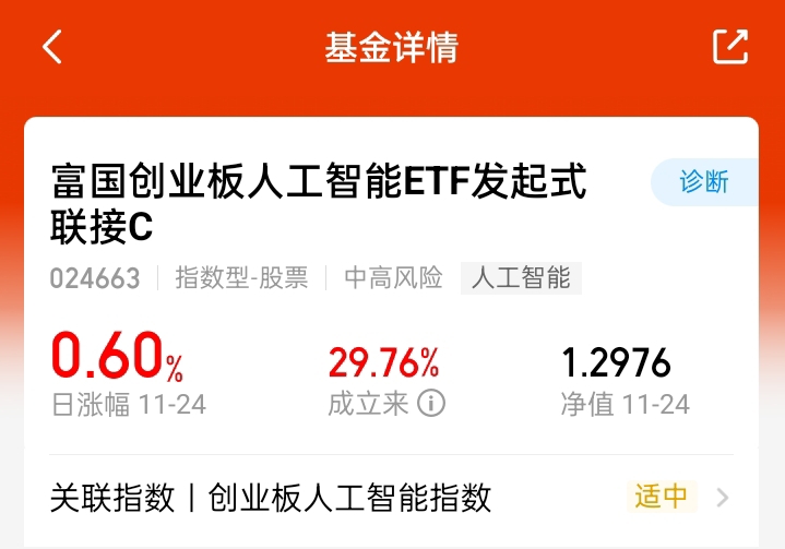 这波实在太舒服了,A股全线飘红迎来大涨,特别是创业板方向,我今天选择加2000$富国创业板人工智能ETF发起式联接C$ 它覆盖了创业板人工智能的龙头企业,从算力硬件到产业应用全链条都有布局,今天AI方向是很猛的,当前利好消息很多,像是“创世纪计划”啥的,都在推动AI产业的布局,AI的方向是没错的,技术突破产业落地加上政策托底我表示看好。