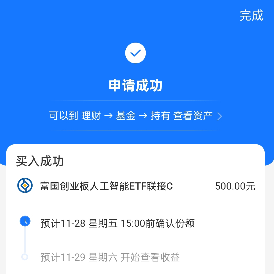 最近我持有的$富国创业板人工智能ETF发起式联接C$ 表现也很不错,今天看估值又上涨了近一个点,还是挺让人开心的,因为我前面加仓的位置比较高,目前收益还是负的,所以我今天打算继续加一点,平摊一下成本,毕竟很多大佬最近都在加仓,我觉得这个方向后面应该还会继续上涨的呢!
