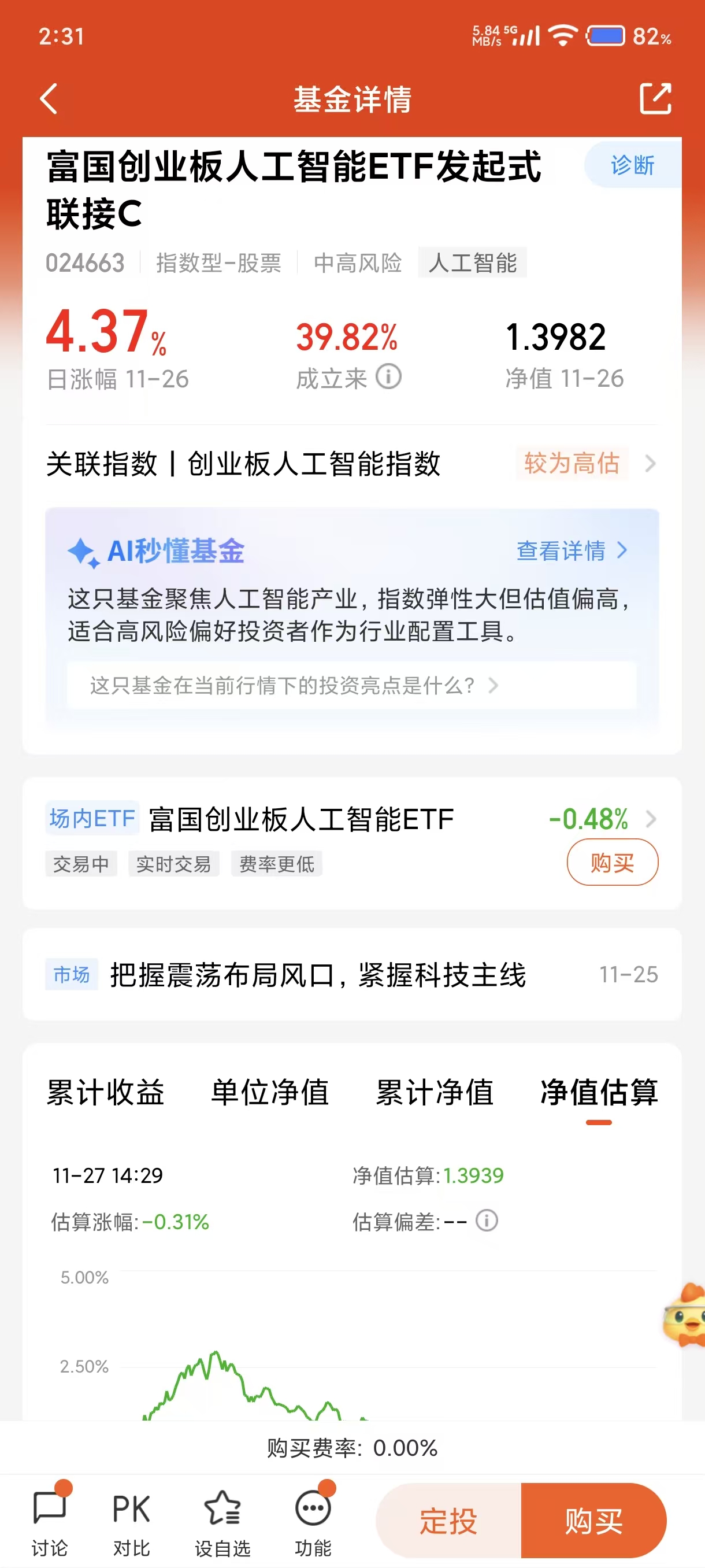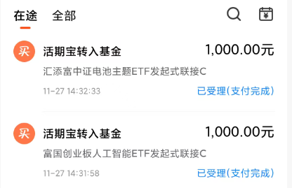 今天选择加仓1000元富国创业板人工智能ETF发起式联接C(024663),这只基金跟踪的是创业板人工智能指数,包括创业板中与人工智能技术研发、应用密切相关的上市公司,前十大重仓股包括中际旭创、新易盛、天孚通等。$富国创业板人工智能ETF发起式联接C(OTCFUND|024663)$