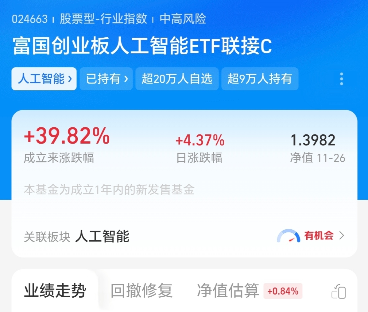 今天股市行情还是不错的,三大指数收红,通信设备、半导体板块涨幅居前。消息面,谷歌与Meta就数十亿美元的TPU供应进行合作, 若合作达成,Meta计划自2026年起租用并最终部署谷歌芯片,这标志着AI芯片市场可能向多元化发展。富国创业板人工智能$富国创业板人工智能ETF联接C$$富国创业板人工智能ETF发起式联接C$ 连续两天涨的不错, 昨天涨4.37%,前天涨3.24%,持仓都是光模块,人工智能相关板块,成立来快40个点, 业绩同类排名靠前,回撤控制的不错,反弹修复也非常快,经理管理经验丰富,我继续看好了。