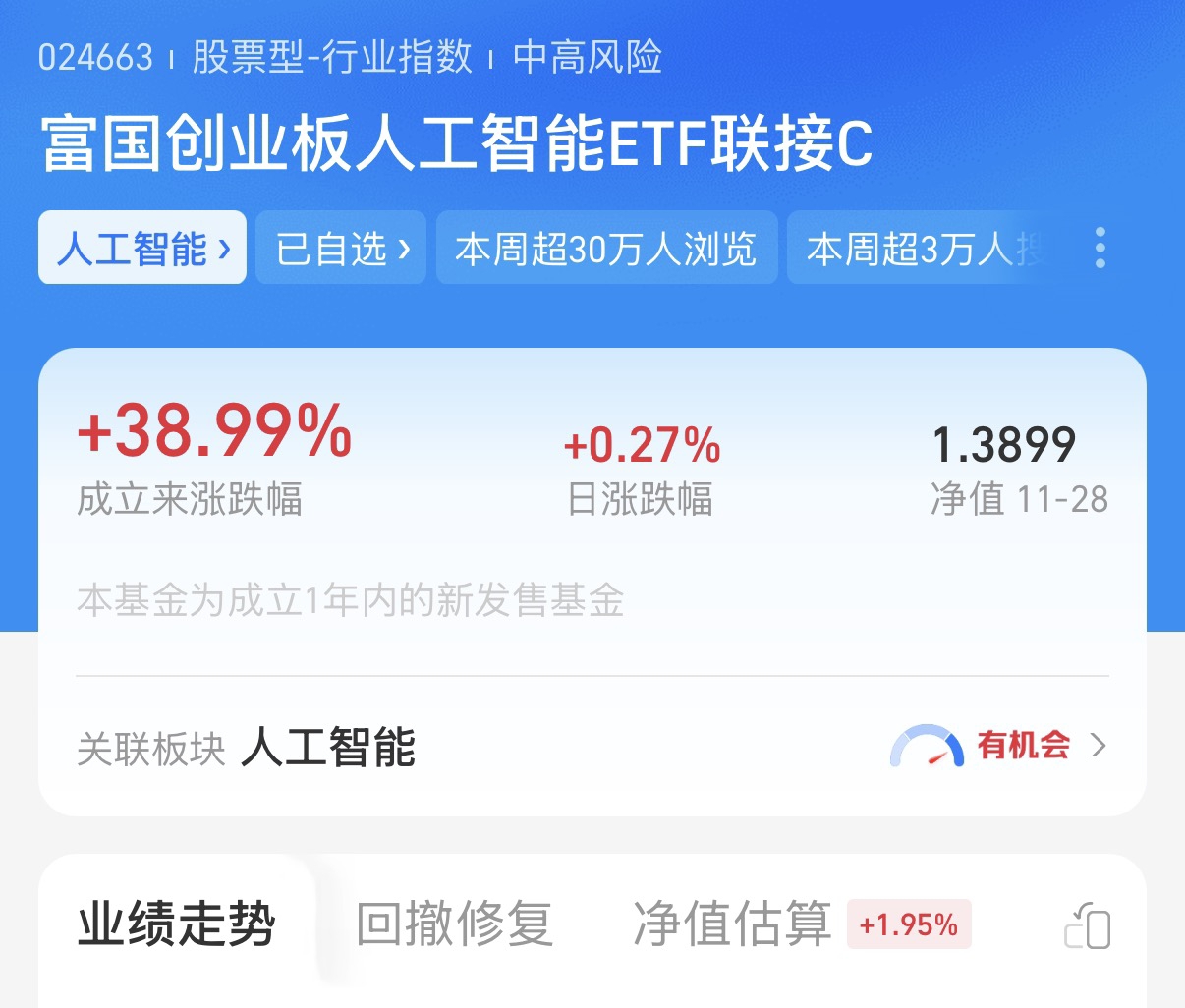 行情回暖,创业板人工智能一路上涨。今天我也是上车了$富国创业板人工智能ETF发起