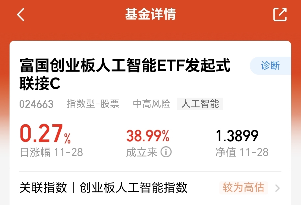 宝子们,很多人以为创业板人工智能=CPO?今天这波逆势大涨直接打破认知!$富国创业板人工智能ETF发起式联接C$ 单日涨幅直接碾压多数主动基,表现太不错啦!