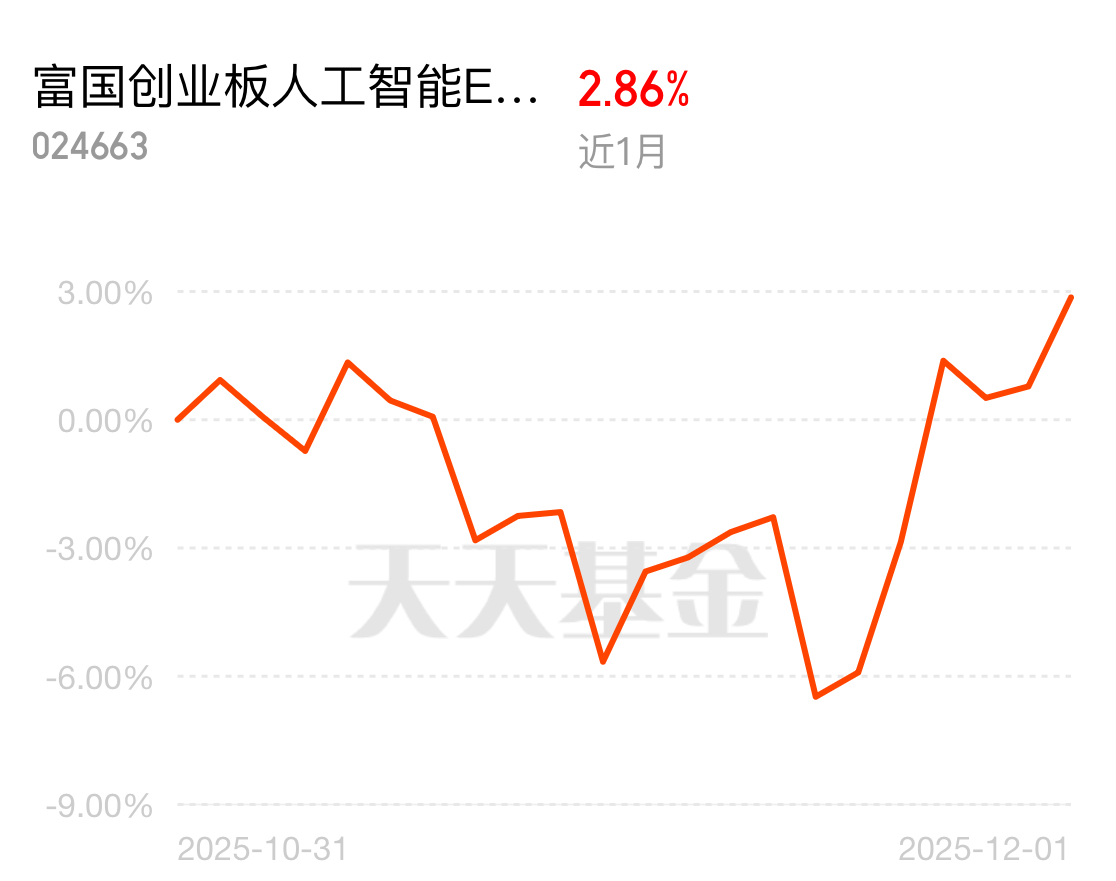 今天人工智能涨的也还不错,创业板人工智能指数早盘冲高涨逾2个点,5日线上穿60日线继续演绎强者恒强。最近大肉不断,近1周涨了7.76%,今天继续吃肉的同时我也右侧追加了一份$富国创业板人工智能ETF发起式联接C$ 。