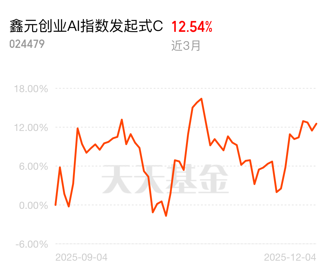 $鑫元创业AI指数发起式C$近三个月涨12.54%稳步向前!一键打包创业板AI全