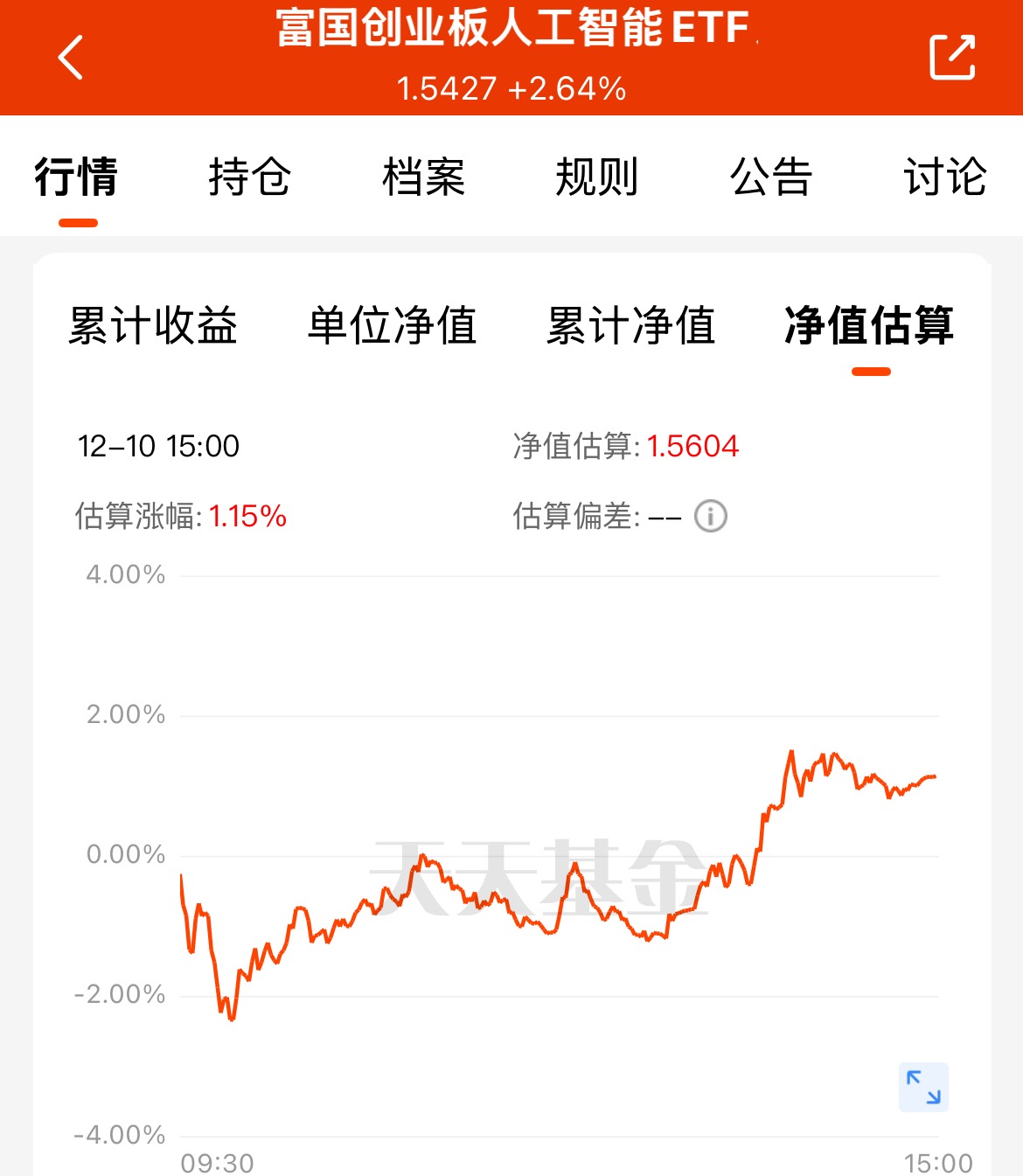 拒绝回调!$富国创业板人工智能ETF发起式联接C$ 真给力,V起来了!我顺势而为再定投一份,象征工智能这样高弹性的板块在市场震荡的时候抓反弹呢,还是很不错,现在的核心逻辑依然还是A需求,谷歌云营收暴增、TPU性能狂飙打脸AI泡沫论,叠加英伟达H200芯片解禁落地,AI需求已进入爆发阶段。人工智能作为产业链核心环节,随着AI需求被验证,业绩也将迎来高增长,前景无量。