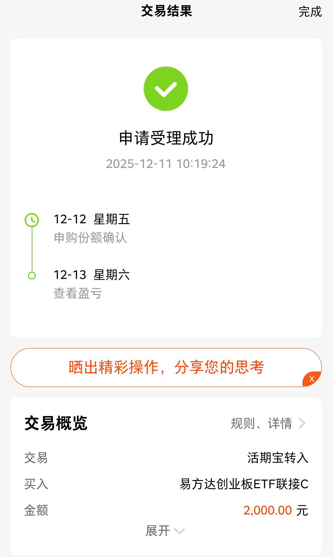 今天大盘指数高开,早盘有些分化,创业扳指先翻红上涨,最近创业板连涨,趋势较强,在产业趋势与政策支持的利好下,创业板指是把握“新质生产力”的核心载体,我加仓易方达创业板ETF联接C,近一年上涨40.8%,业绩优秀。