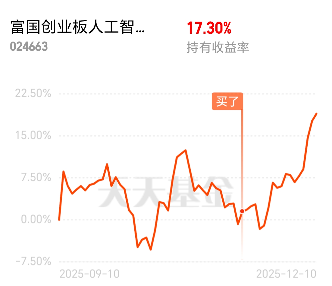 $富国创业板人工智能ETF发起式联接C$还有一些利润,后续再跌再加