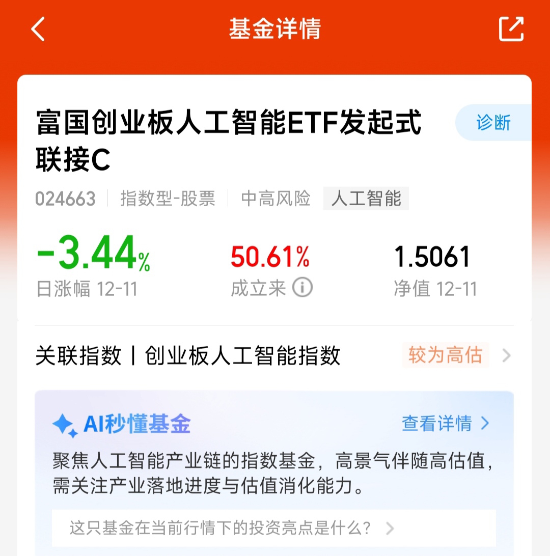 市场全天震荡上行,主要指数普遍收涨,结构性机会持续涌现。其中,$富国创业板人工智能ETF发起式联接C$ 表现不错,今日估值增长1.73%,近一月上涨12.38%,成立以来累计收益高达50.16%。这一数据不仅跑赢多数宽基指数,也凸显人工智能板块在当前行情中的领涨地位。随着全球数字化转型进程加快,AI已成为科技发展的核心驱动力之一,该基金有望持续捕捉产业成长机遇,具备中长期配置意义。