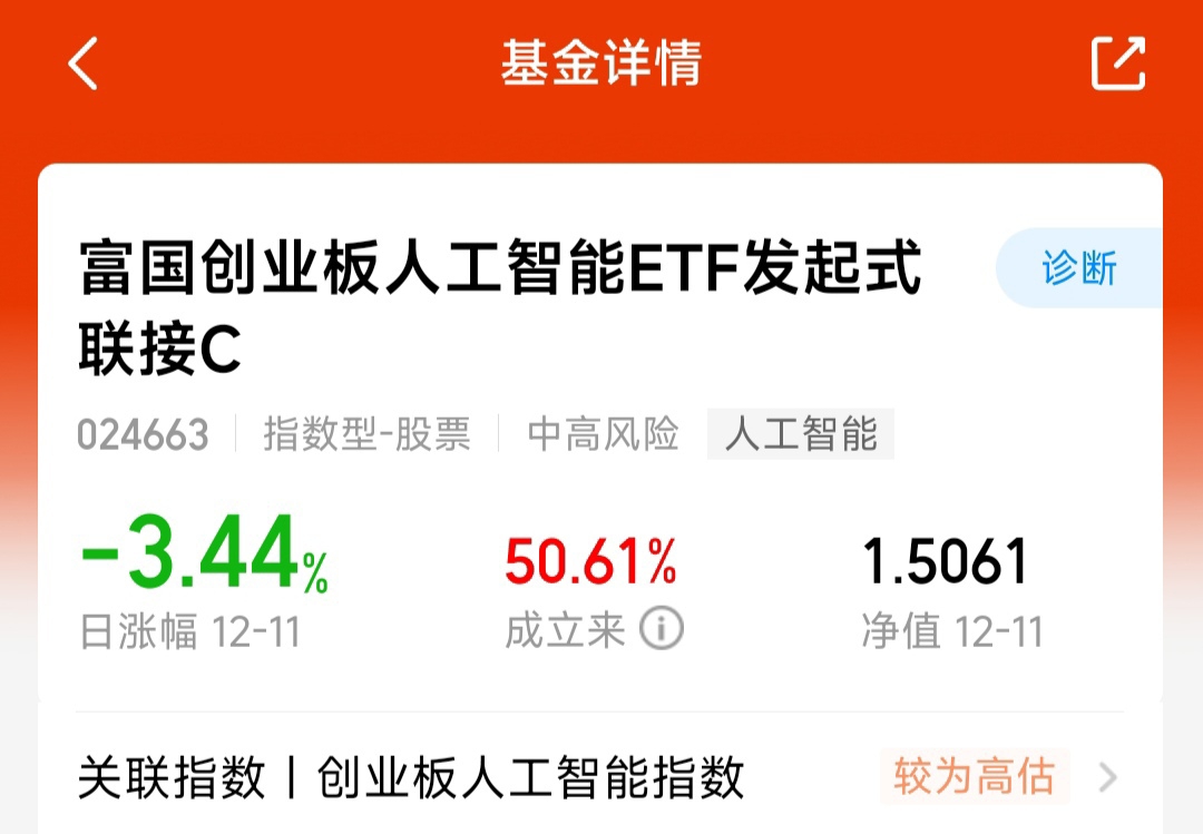 今日权益市场整体表现稳健,三大指数震荡走高,全线收红。今日继续加点$富国创业板人工智能ETF发起式联接C$ ,该基金今日估值上涨2.08%。自成立以来涨幅50.16%,近一月收益上涨12.38%,反映出人工智能主题强劲的市场表现与资金关注度。随着AI技术加速落地、应用场景不断拓展,该领域有望持续受到政策支持与资本青睐,中长期增长潜力可期,值得关注。