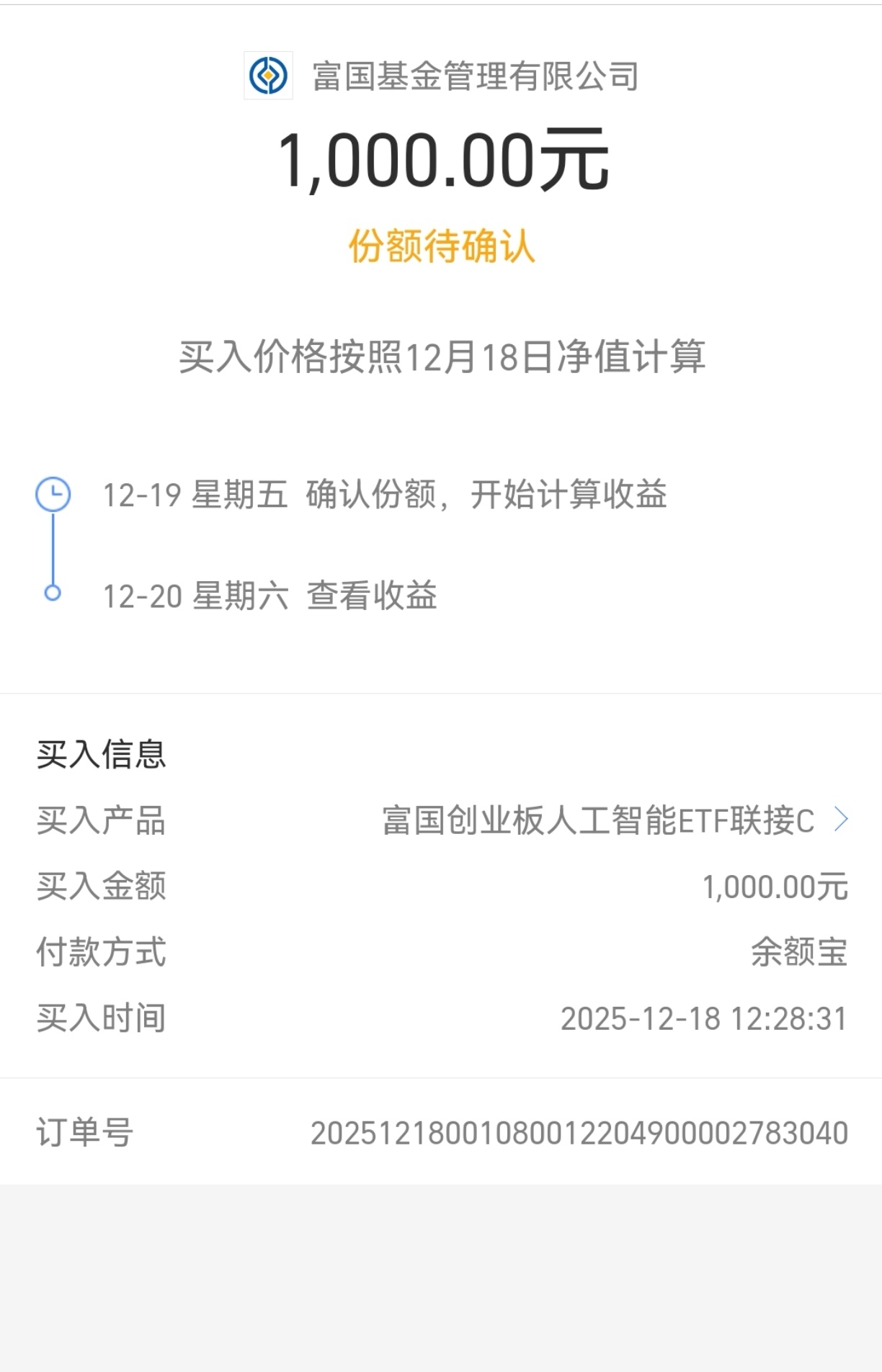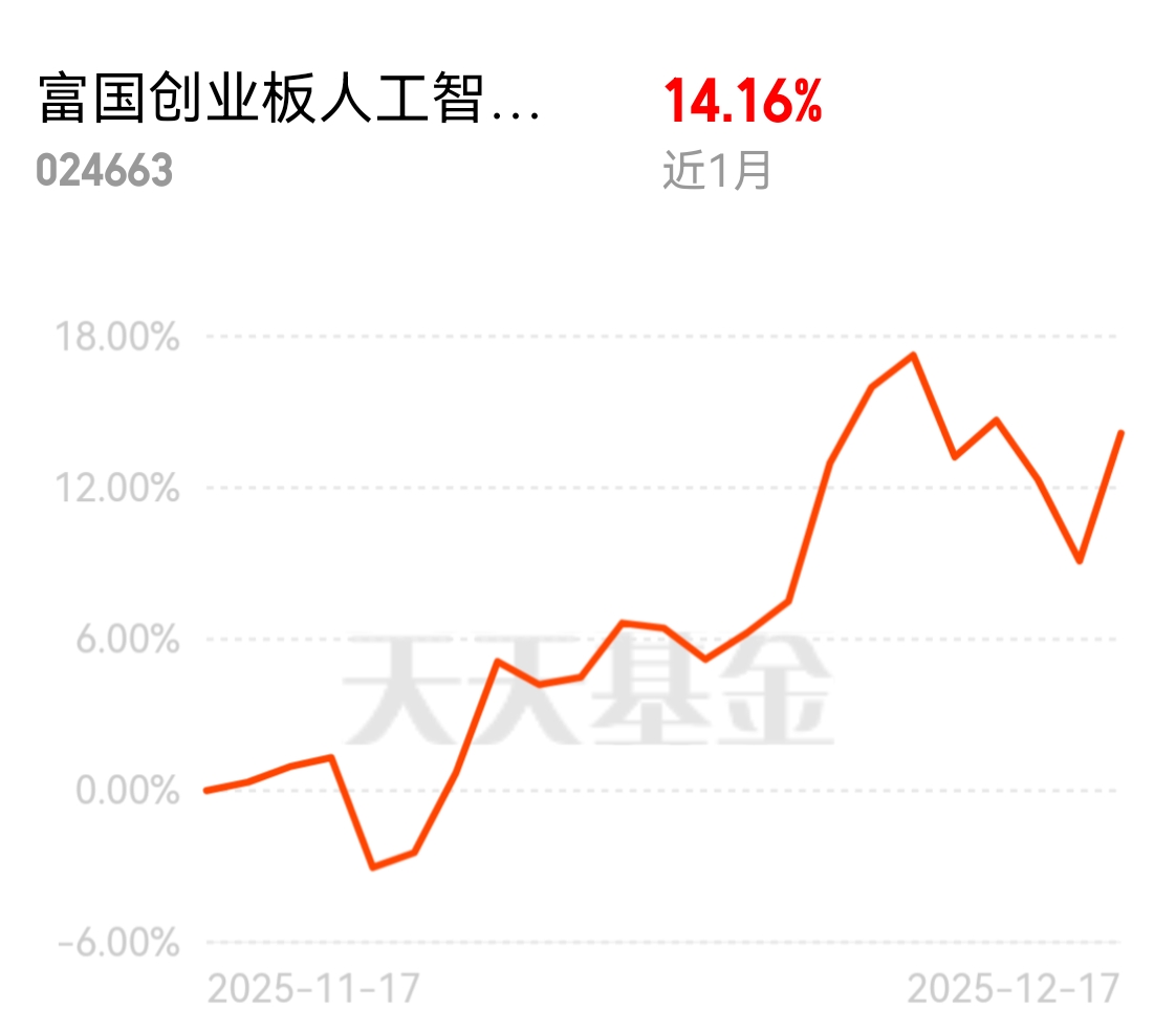 今天加1000元$富国创业板人工智能ETF发起式联接C$ 当前阶段核心无疑也是科技人工智能机器人这块,听说人工智能辅助诊断被列入国家医保局立项指南,国内人工智能的发展也被列为新质生产力的重要引擎,提升到战略地位上,业绩确实可圈可点,近1个月上涨14.16%,近3个月上涨119.23%,关键是费率还低,买入0申购费,满7天卖出0赎回费,目前我要开始持续的低吸了,做中长线拿着。