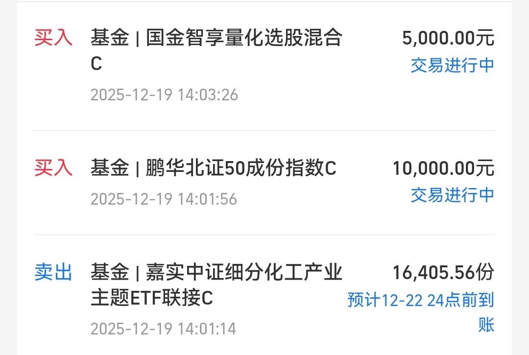 我今天加仓了创业板人工智能、北证50指数、黄金、渤海汇金优选进取6个月、国金智享量化选股,卖出一只基金,其它基金继续持有待涨。