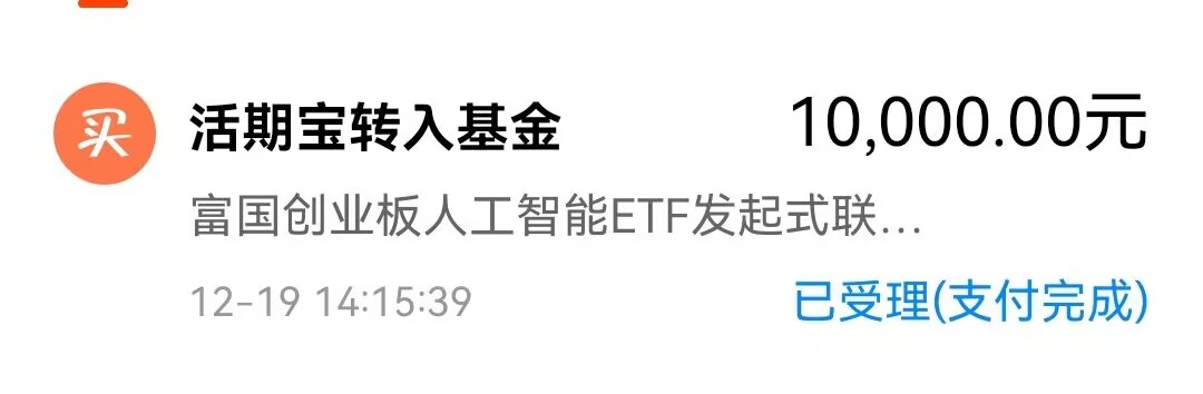 1、$富国创业板人工智能ETF发起式联接C(OTCFUND|024663)$,买入10000元