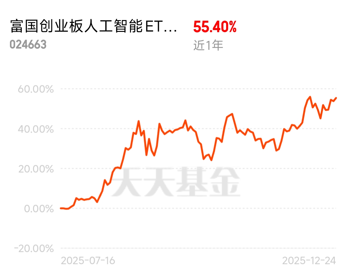 最近市场波动还是挺大的,板块轮动的也比较快,但是创业板我是一直看好,所以我也是分了好几次的买进来了,基金经理的能力我也比较相信,我打算自己开始慢慢定投,有时候也不知道是不是买在合适的点,所以我就在回调的时候慢慢布局,拉低成本,可能短期会有波动,然后再次买进来就准备拿长期,$富国创业板人工智能ETF发起式联接C$