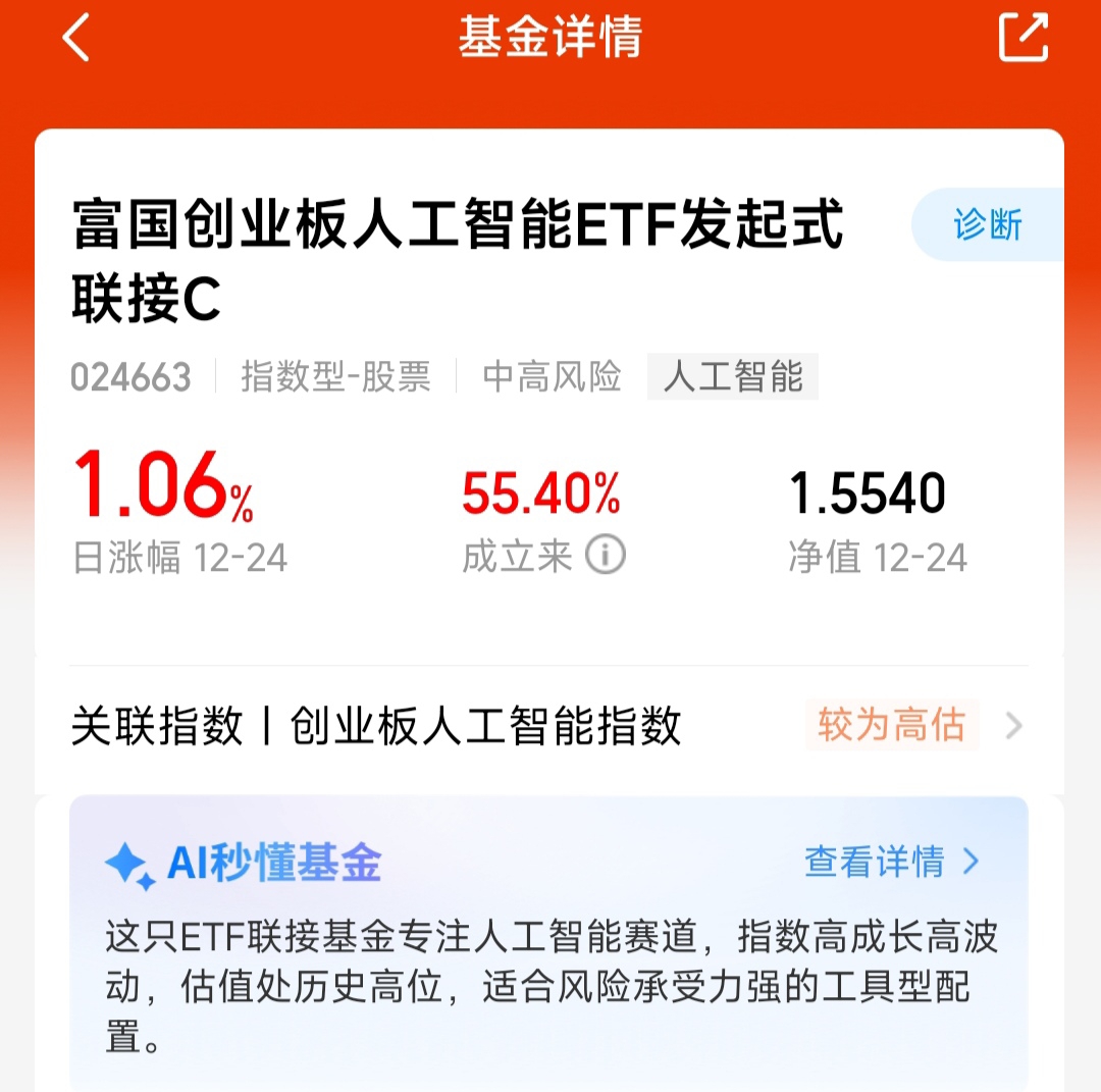 在科技股内部轮动的结构性行情下,$富国创业板人工智能ETF发起式联接C$ 今日出现调整。该基金昨日净值上涨1.06%,近一年累计收益率达55.40%,整体业绩稳健上涨。人工智能作为未来核心科技驱动力,其产业发展逻辑并未因短期市场波动而改变,选择继续分批布局,坐等吃肉。