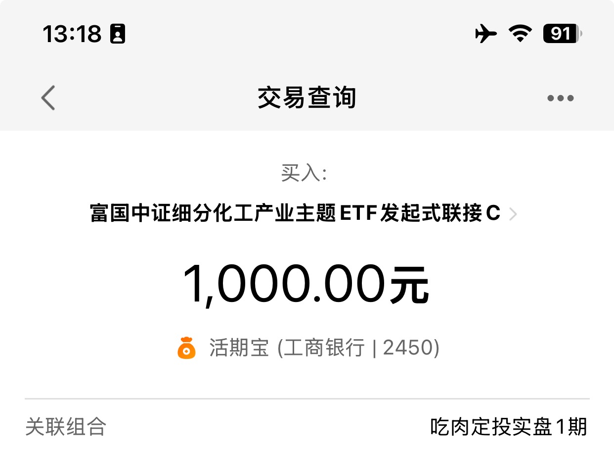今日逢低加仓1000元富国化工(020274),$富国中证细分化工产业主题ETF发起式联接C$ 今日调整低位上车,化工会迎来一波大爆发,我们能做的就是提前布局等风来。
