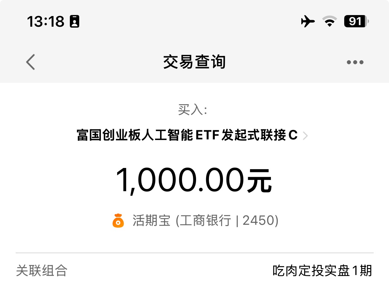 今日追高买入1000元富国创业板人工智能(024663),$富国创业板人工智能ETF发起式联接C$ 这一波涨的不错,吃到了AI应用的肉,我判断AI应用会承接卫星出来的资金,所以继续看多做多。