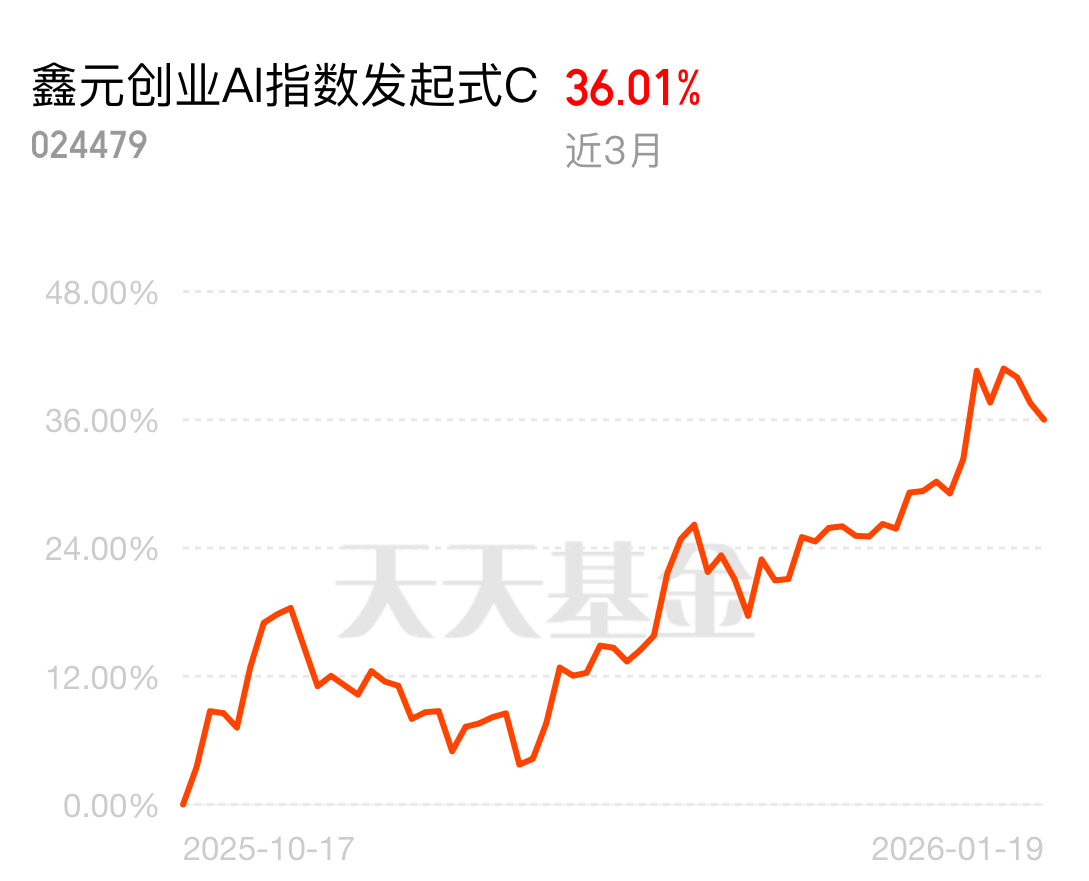 鑫元创业AI指数发起式C近1月涨12.31%、近3月涨36.01%,同类排名35