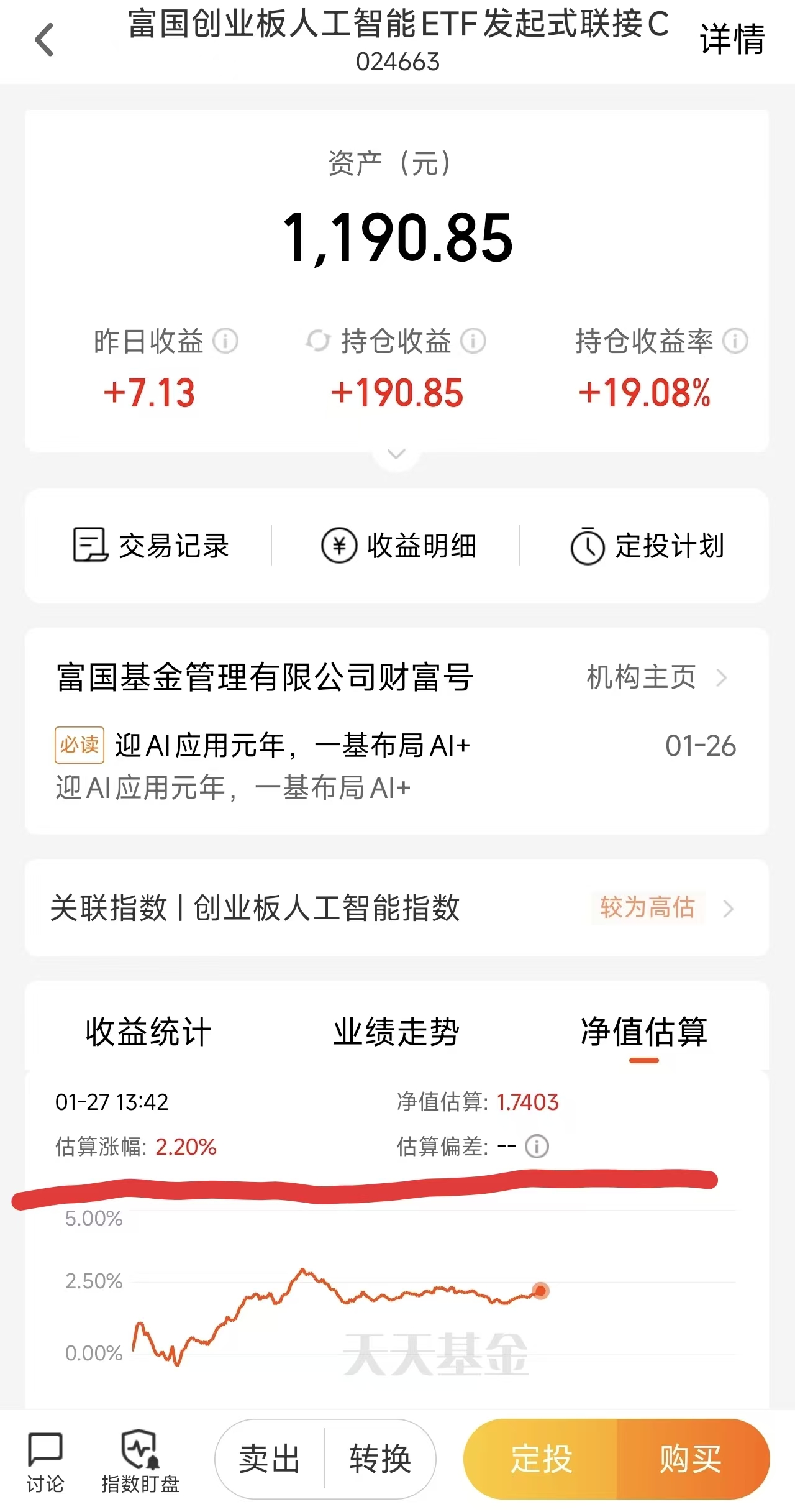 $富国创业板人工智能ETF发起式联接A(OTCFUND|024662)$