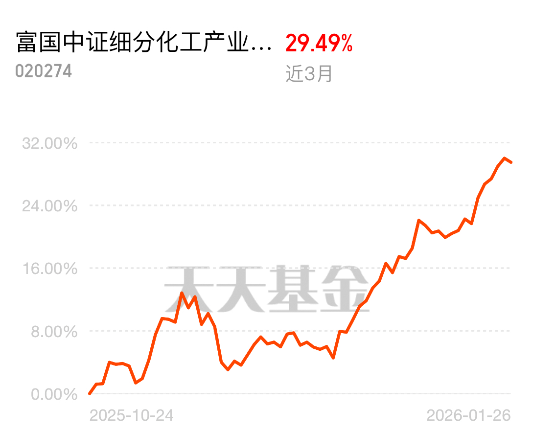 打开帐户看到富国中证细分化工产业主题ETF联接C又红了,三个月29%的涨幅,在同