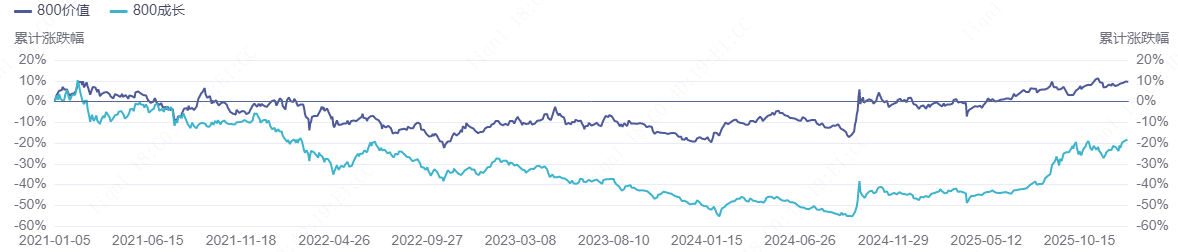 事实上,从中证800价值/中证800成长的比值来看,自2025年10月以来,价值风格已开始相对成长风格走强。