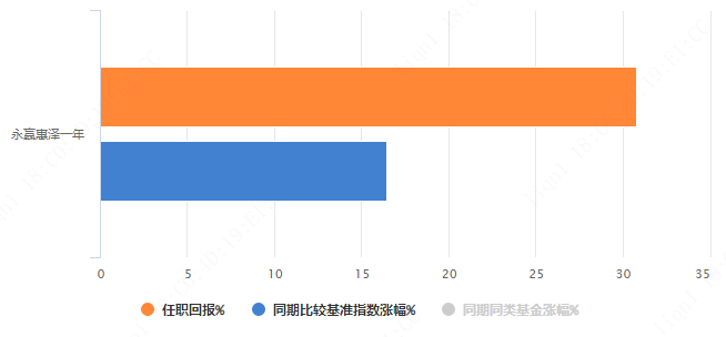 在王乾的管理下,永赢惠泽一年任职回报30.80%,同期比较基准指数涨幅16.42%,超额回报14.39%。