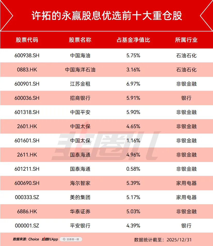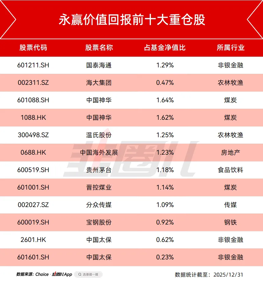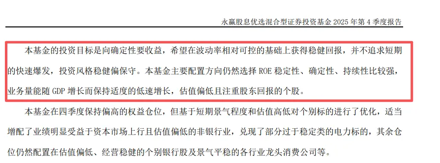 永赢股息优选,四季报最新披露的持仓也以高股息资产为主。